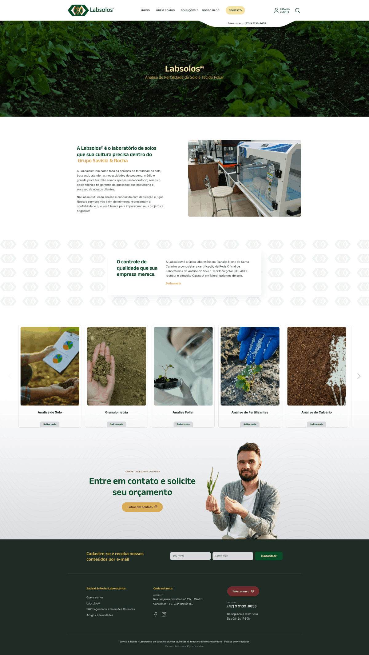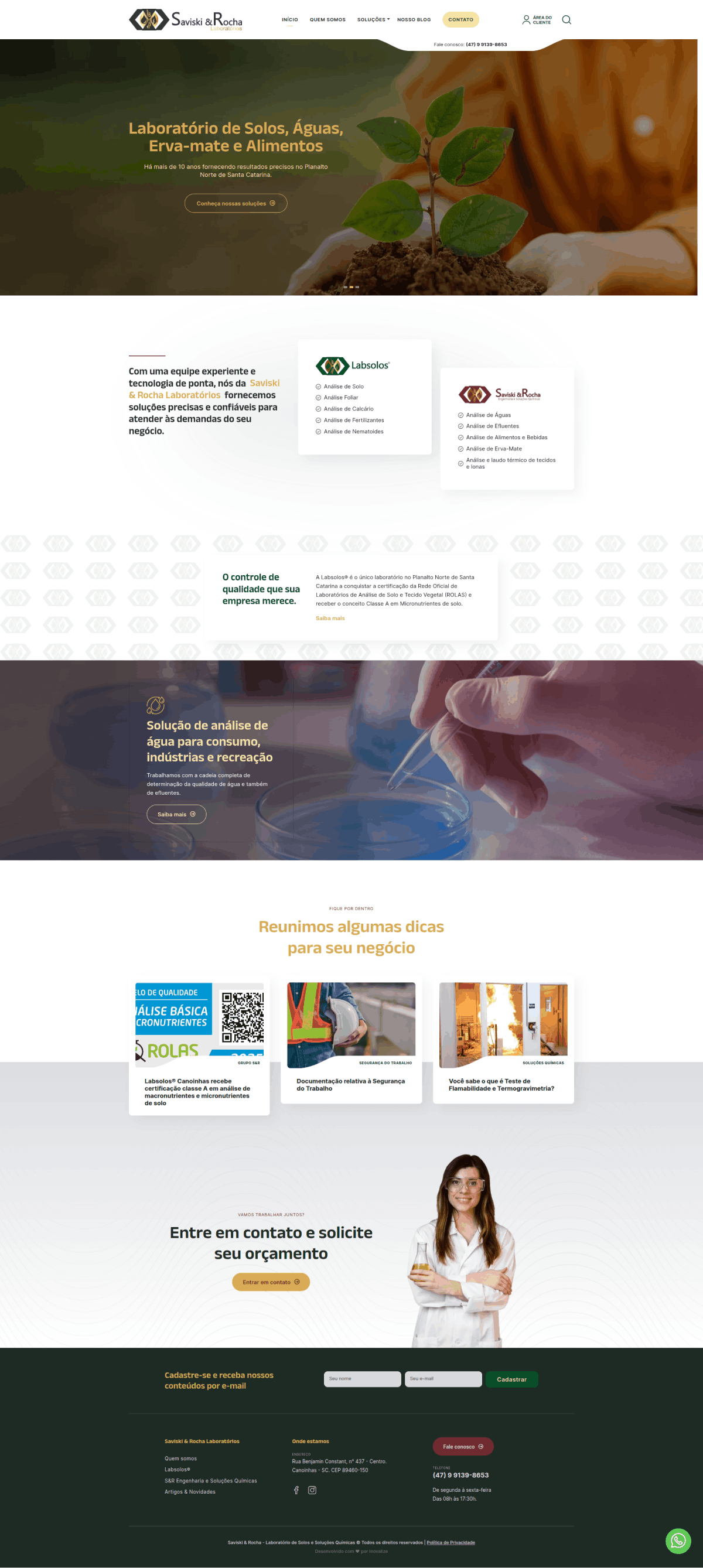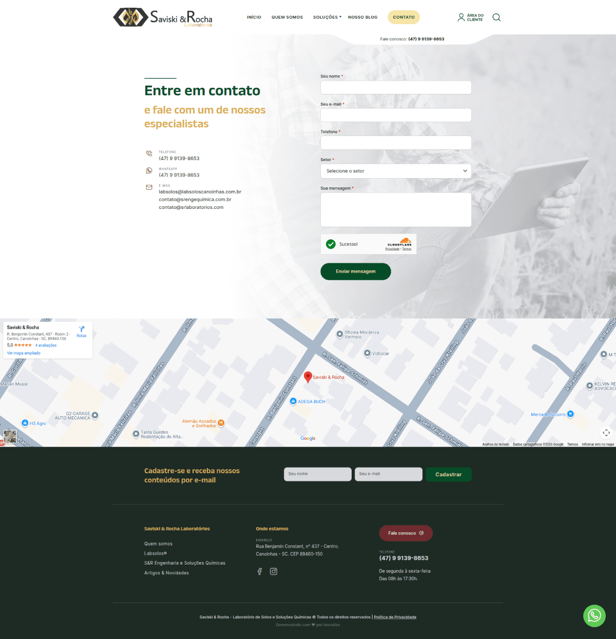 A Saviski & Rocha Laboratórios buscou a Inovalize com o desafio de refatorar seu site institucional, visando a adequação completa à sua identidade visual e uma organização estratégica de suas diversas soluções.